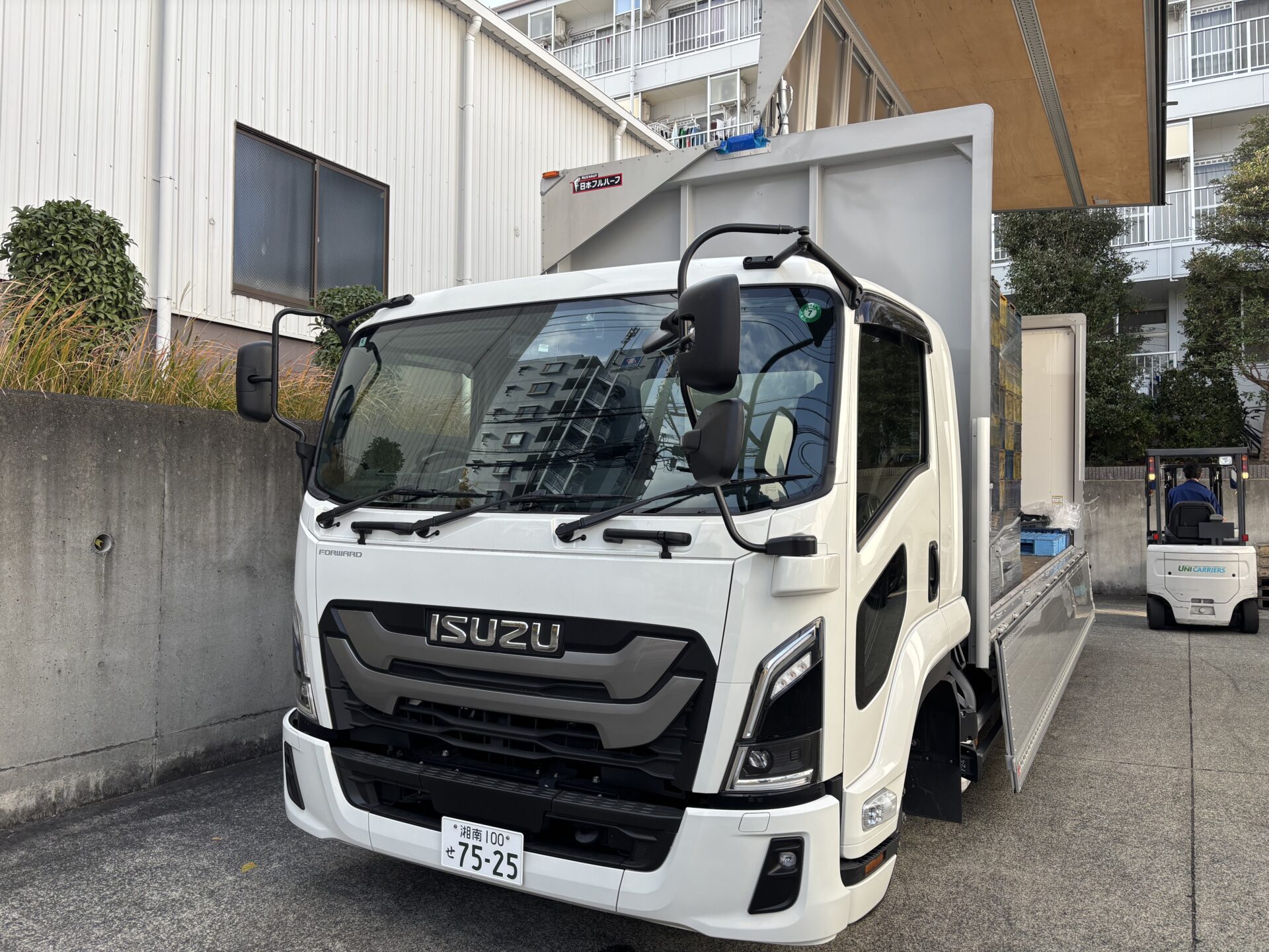 お知らせ 2025.06.30 4tトラック納車 2025年6月に本社(神奈川県藤沢市)で稼働している4tトラックを 更新いたしました。新車での更新となり最新の安全装備と環境にも優しい 仕様となっています。引き続き安全運転で運行してまいります。